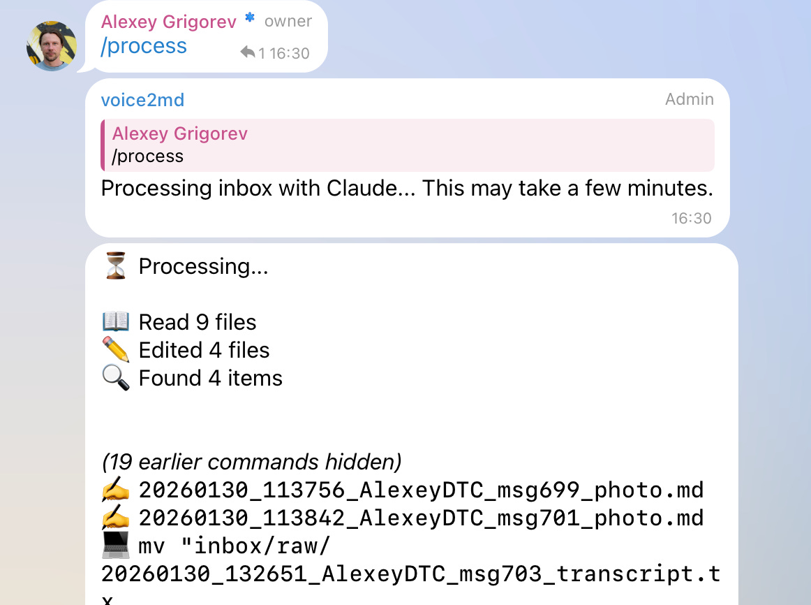 But it had one limitation: manual processing. Over time, my Telegram became overloaded with voice notes that quickly piled up into a long, unstructured list of raw materials. Some pieces belonged to the same topic. Others were partial thoughts, corrections, or follow-ups.